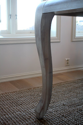 Spisestua vår har vi brukt lang tid på å finne og bestemme oss for. Først kjøpte vi dette bordet fra Bohus. Det viste seg å være stor fargeforskjell og flere andre småfeil på det bordet vi fikk, så det reklamerte vi på. Så fant vi det bordet vi har nå på en lokal butikk som heter Herlighet. Jeg elsker dette bordet! Bena er perfekte, og helt min stil. Det er importert fra Kina, så det er ikke så mange andre som har samme, og det er jo litt morsomt.